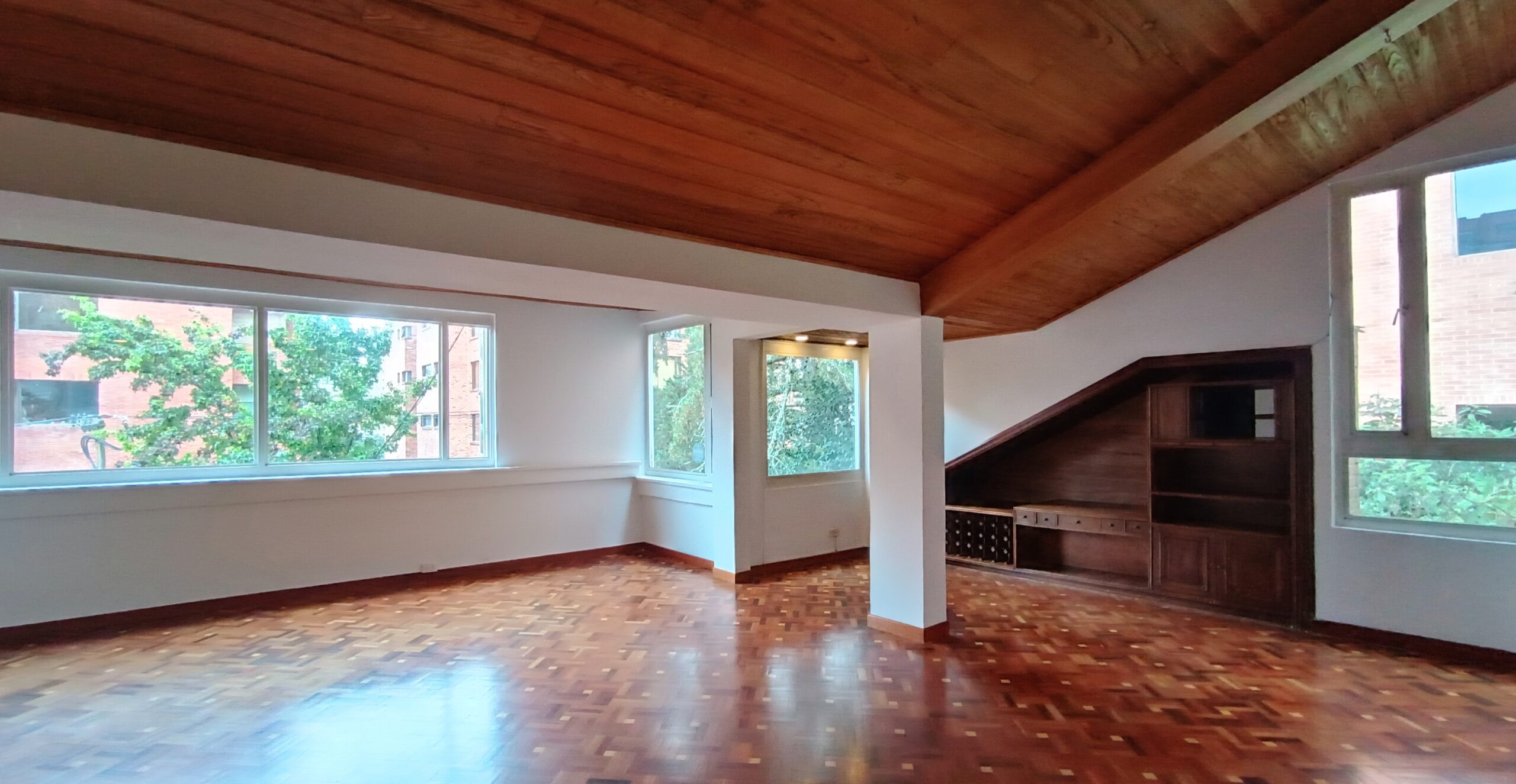 Apartamento de 3 niveles con terraza, Barrio Los Rosales/Bellavista, sobre la Cra. 2A entre Cls. 72 y 74. Piso 3° SIN ascensor. Área 180,58 M2. 1ER Nivel: Cocina tradicional a gas, zona de lavandería independiente, Cuarto de servicio con baño. Comedor con piso madera-parqué. 2DO Nivel: Sala muy amplia con chimenea, piso madera-parqué y espacio para adaptar un estudio. 3ER Nivel: 3 habitaciones (Ppal. con Baño Privado, amplio Vestier), un segundo baño que comparten las otras 2 habitaciones. Hermosa terraza al aire libre de 23,57 m2. 1 Parqueadero cubierto independiente, 1 depósito. Estrato 6. Edificio con más de 30 Años, vigilancia privada 24 horas, cámaras de Seguridad.