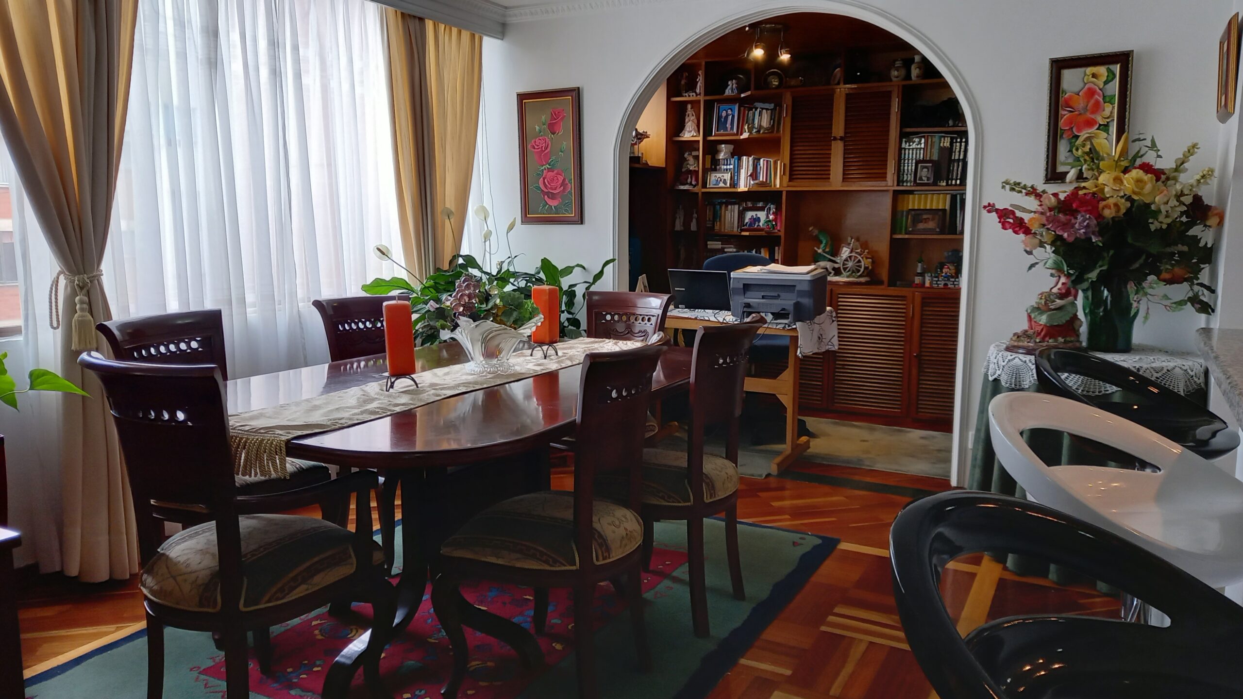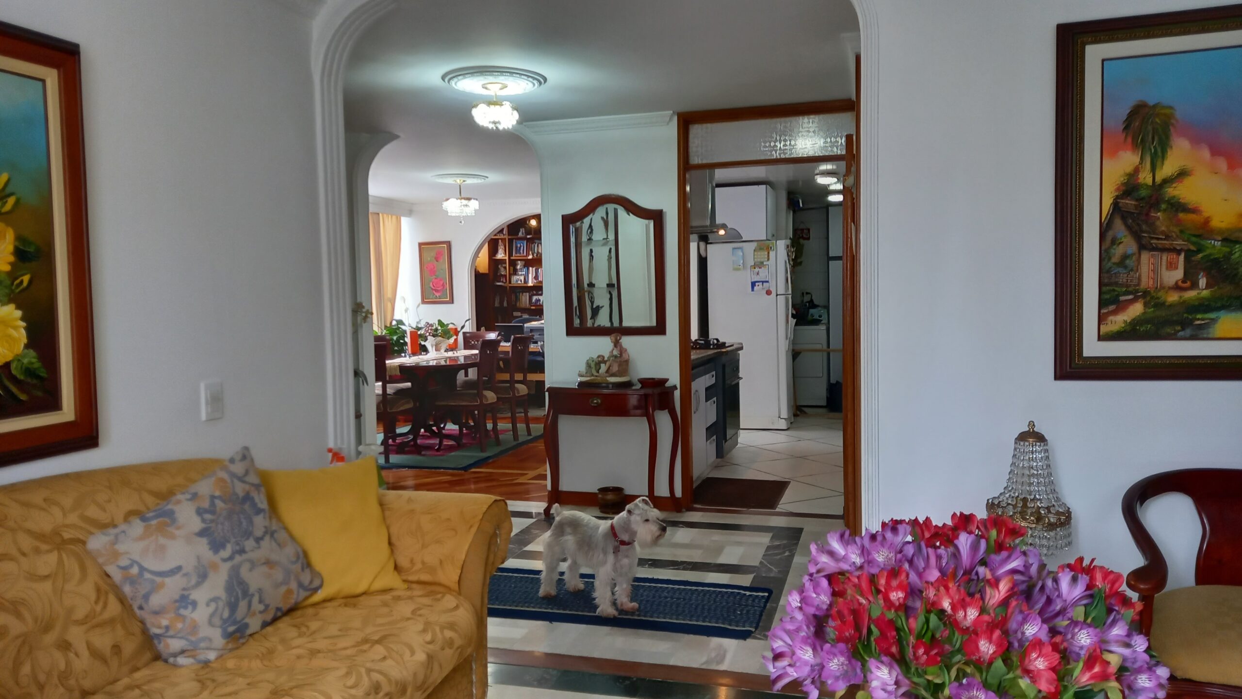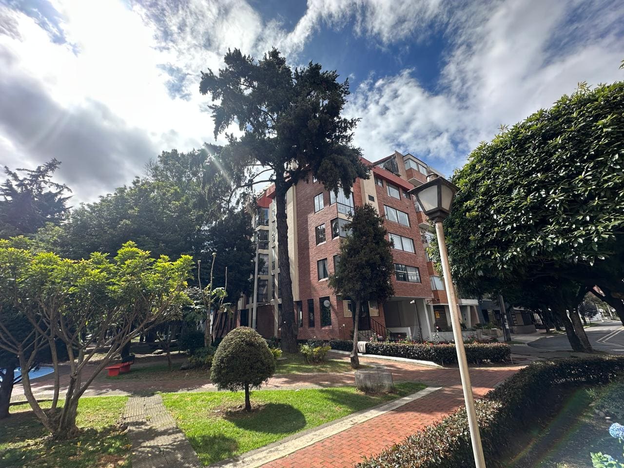 Acogedor apartamento esquinero ubicado junto al parque Nicolás de Federmán, muy iluminado, área de 106 m2. 3er piso exterior, ascensor, habitación principal con baño y closet muy amplio, otras 2 habitaciones que comparten baño y 1 baño social, todos los baños tienen iluminación y ventilación natural, sala y comedor independientes, estudio, cocina abierta con gas, zona de lavandería. 2 parqueaderos en línea. Estrato 5. Vigilancia privada 24 horas. Edificio de 29 años, 10 apartamentos en total, recepción, parqueadero visitantes.